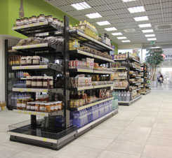 Vybavení prodejny Sklizeno v OC Harfa, Praha.