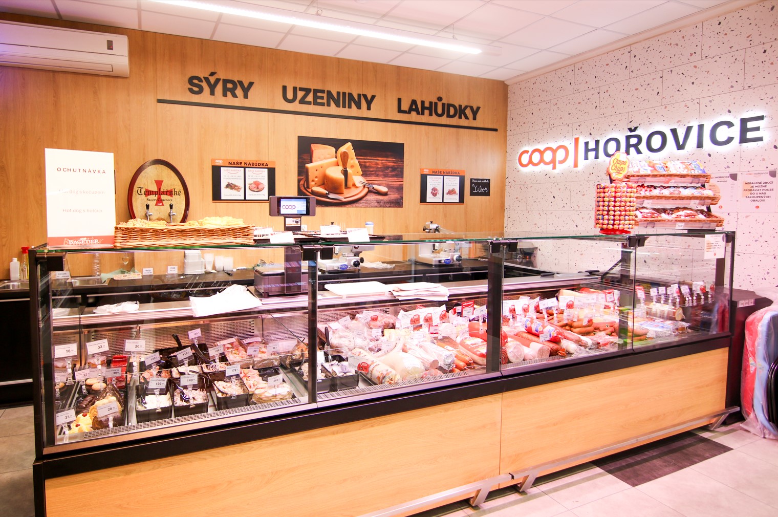 Úspěšně dokončená zakázka pro COOP Hořovice v Hlásné Třebani. Pro tuto prodejnu jsme zajistili kompletní dodávku na klíč vč. chladicího/mrazicího zařízení, truhlařiny, nových podlah, osvětlení, grafiky aj... Děkujeme